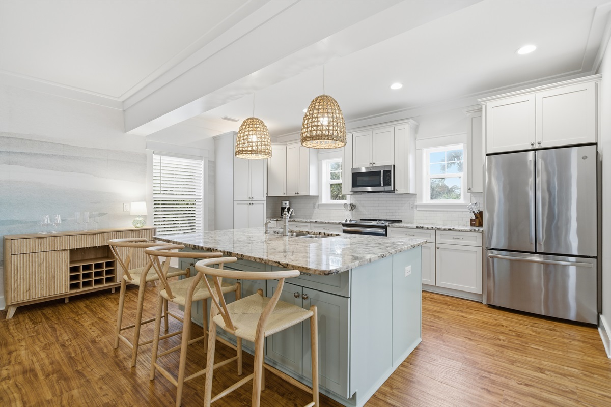 ✔ Dining table seats 10 + island seating
