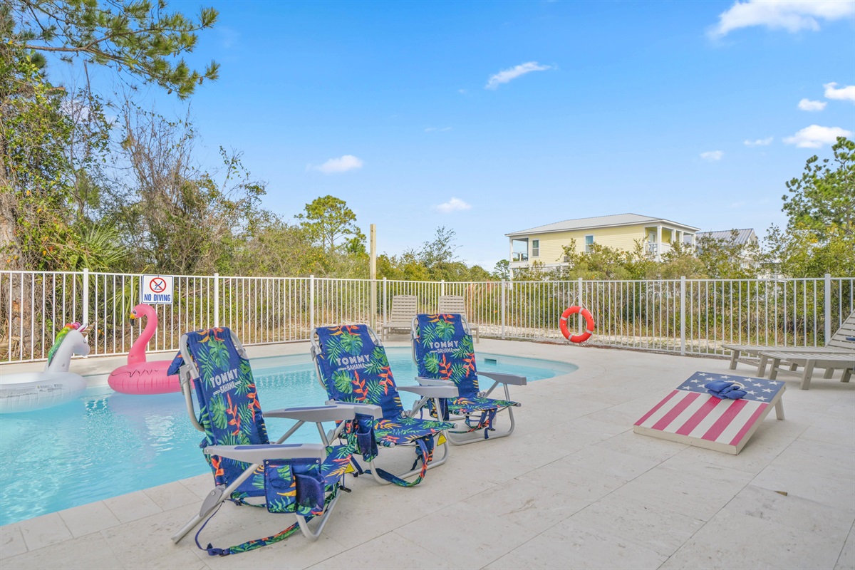 ✔ Picnic tables and Adirondack chairs for poolside lounging