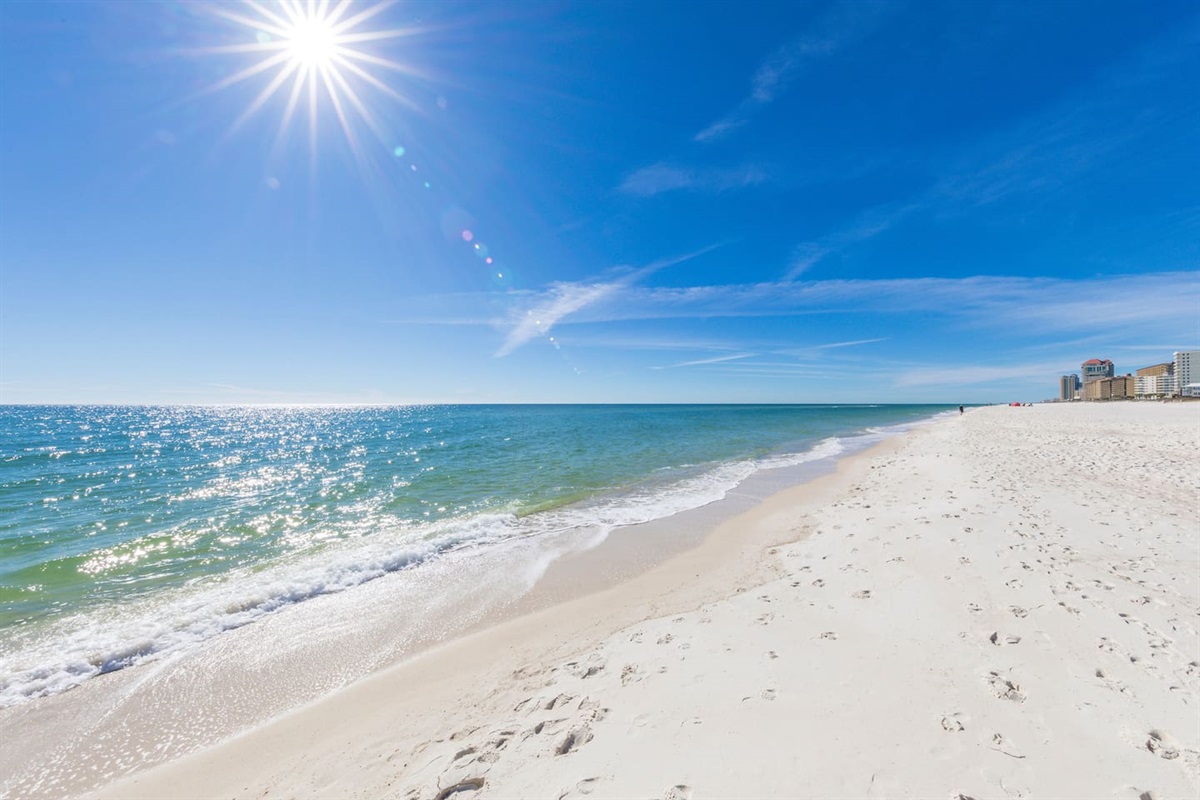 Just one easy block from the beach, this beautifully updated Gulf Shores retreat offers relaxed coastal living with walkable dining, shared resort-style amenities, and partial Gulf & Bay views.