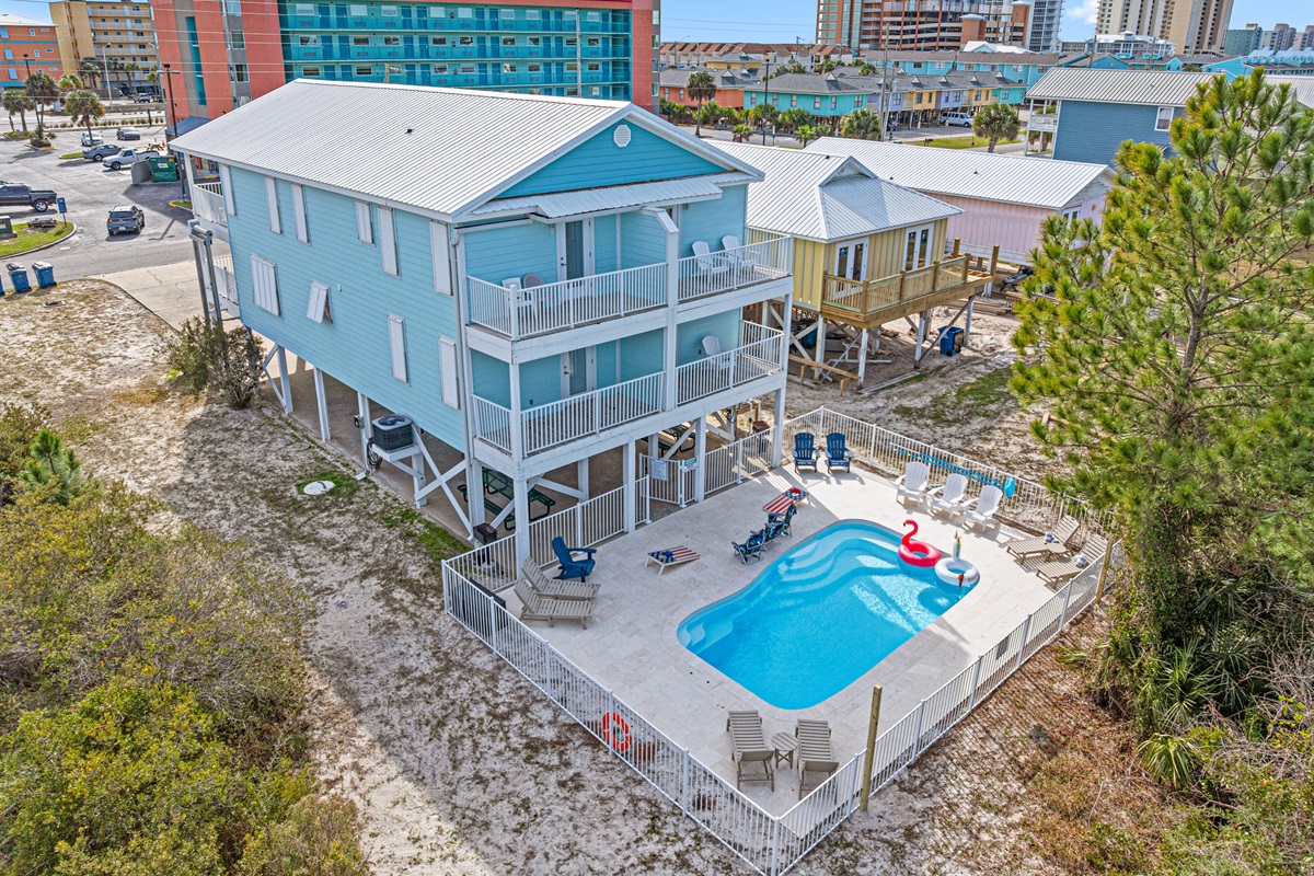 Just one easy block from the beach, Unit A offers relaxed Gulf Shores living with access to a heated saltwater pool, custom outdoor bar, and partial Gulf & Bay views. Enjoy indoor and outdoor living spaces, walkable dining, and a comfortable layout designed for groups who want both convenience and privacy.