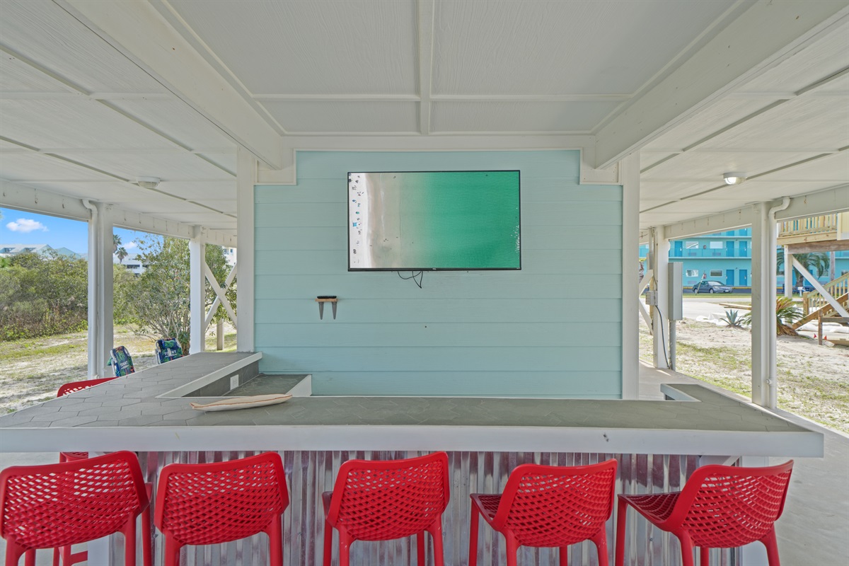 ✔ Custom outdoor bar with bar stools & Roku Smart TV