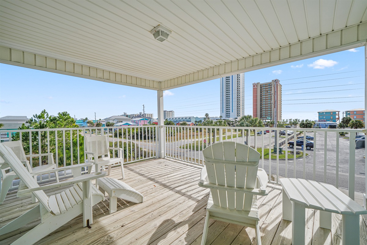 ✔ Covered balcony w/ 3-seat dining
